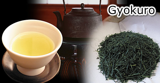 Gyokuro: terbuat dari kualitas teh hijau Ten-cha. Nama Gyokuro mengacu pada warna hijau pucat hasil seduhnya. Daun tehnya tumbuh di bawah bayang-bayang [tidak terkena sinar matahari langsung] sekian waktu sebelum dipanen, yang semakin meningkatkan aromanya.